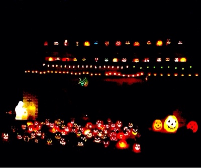ハロウィンのデコレーションにはまってるジュジュなので、ダダが発見した、ご近所のHalloweenのデコレーションの綺麗なお家を3人で見に行ってきました。